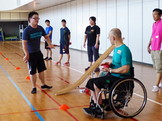 蒸し暑い体育館でしたが、皆、真剣にボッチャ競技に打ち込んでいました。